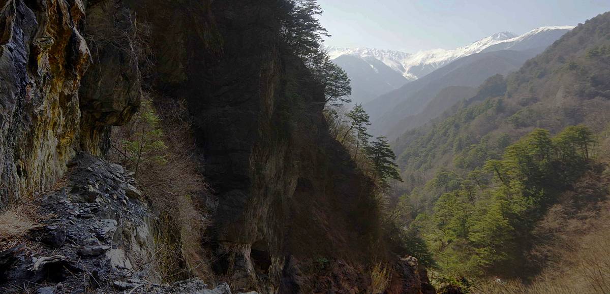 こんな崖を横断していた軌道はもちろん凄まじいが、谷を跨いでいたとみられる索道もまた凄まじいし、いったいどのような工事であったのか気になるところだ。