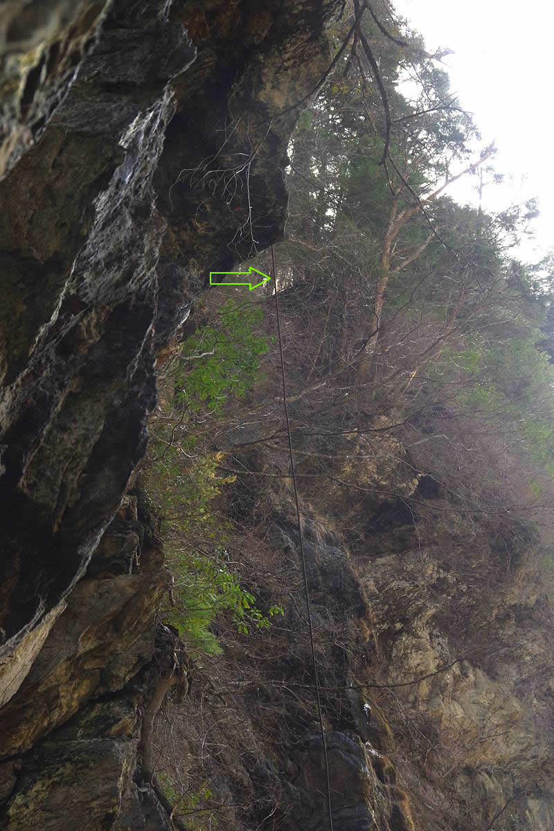 些かの容赦もなく、オーバーハングの拒絶を見せる観音経の崖壁のただ中にぽっかりと口を開ける姿は、