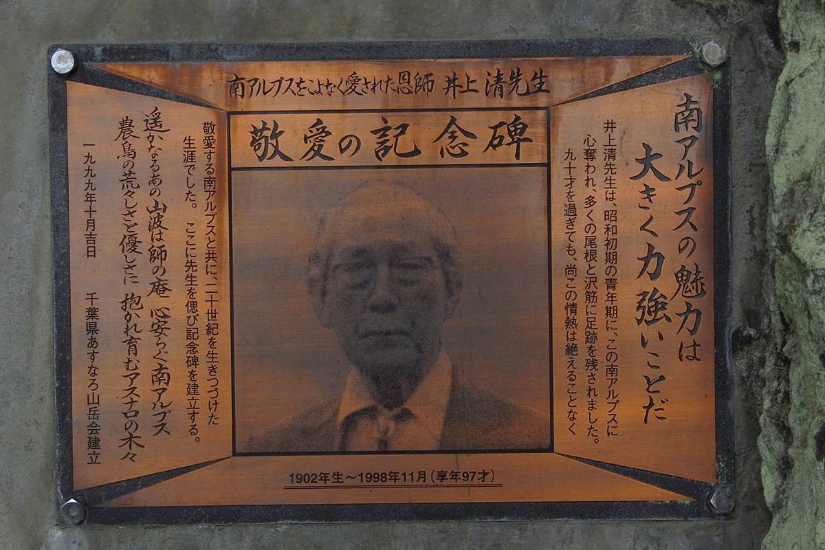 銅版は、井上清という人物を顕彰する内容で、平成11(1999)年に千葉県あすなろ山岳会が建立したものとのことだが、特に軌道との関連はなさそうである。