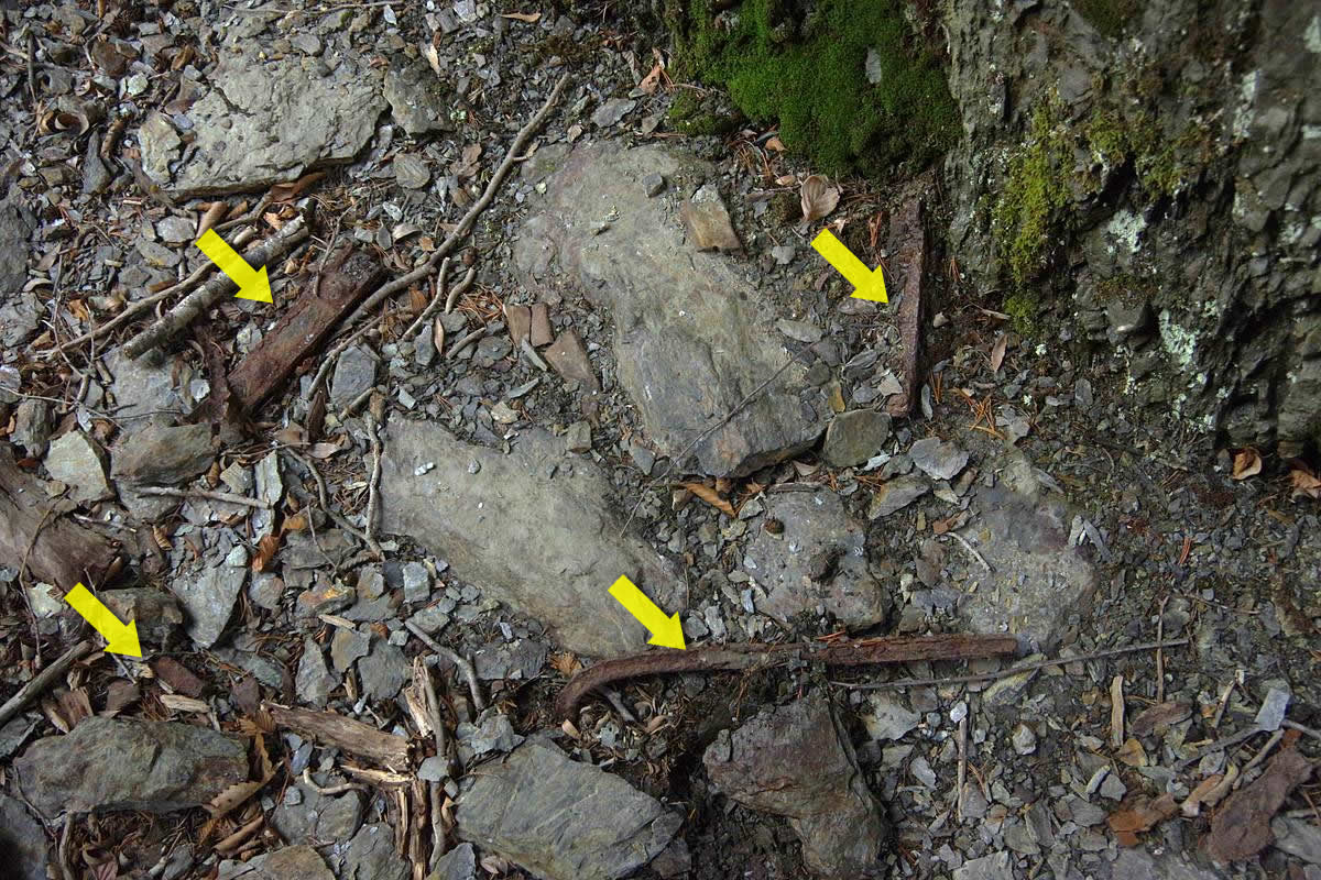 驚いたことに、レールを粉砕した残骸のようなものが、洞床にいくつも散らばっていた。