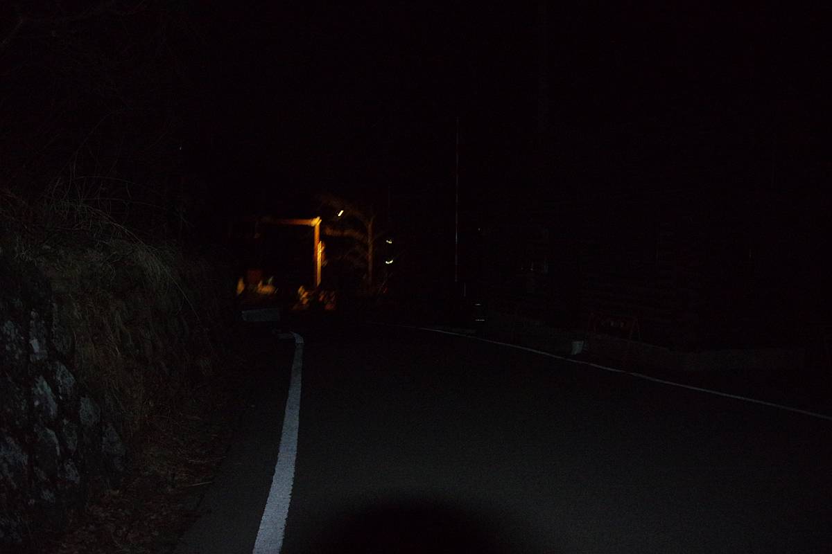 林道のゲートの灯りが見えるぅ〜〜〜。