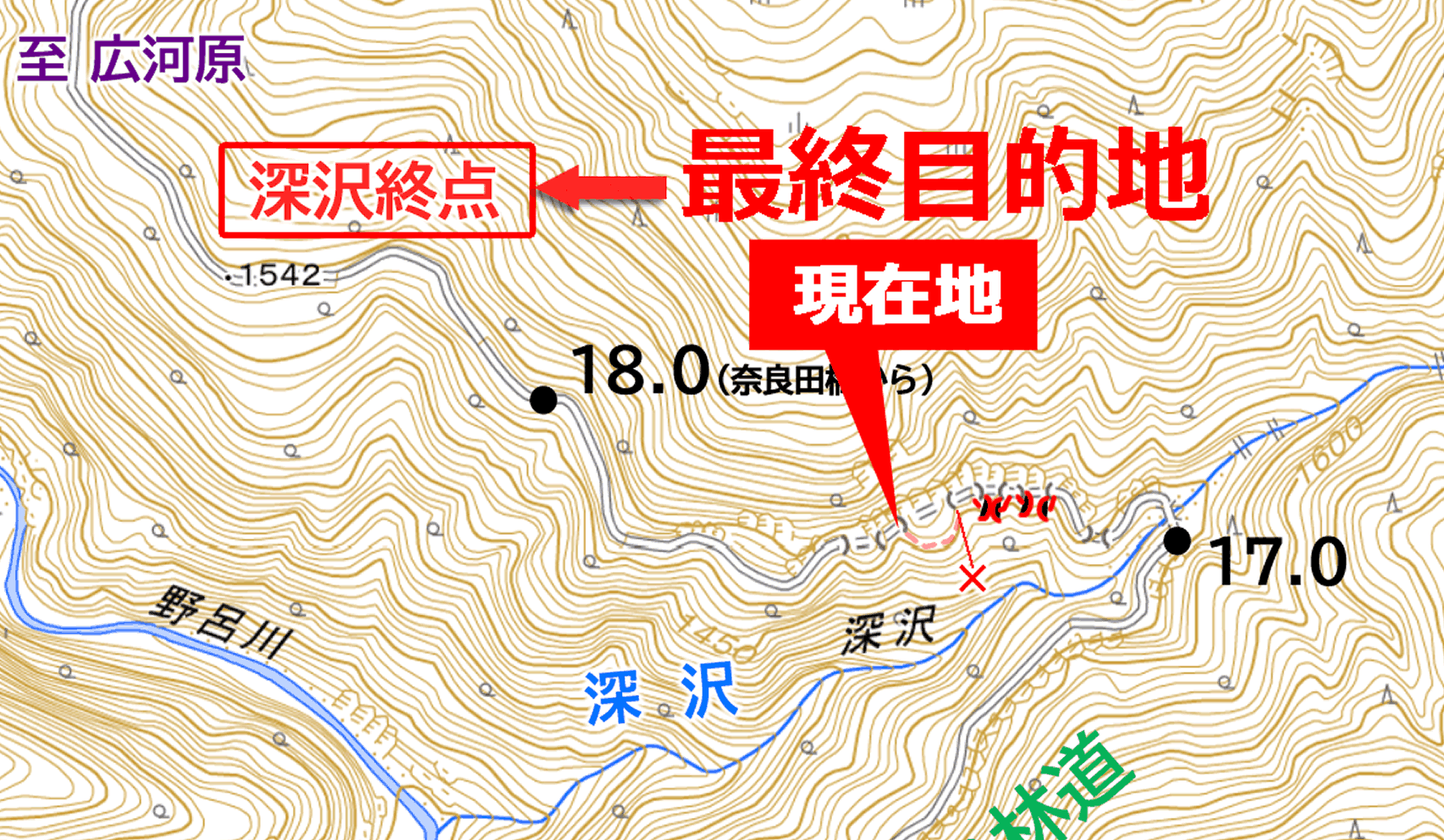 深沢尾根 軌道終点 まで 0km 【到達】