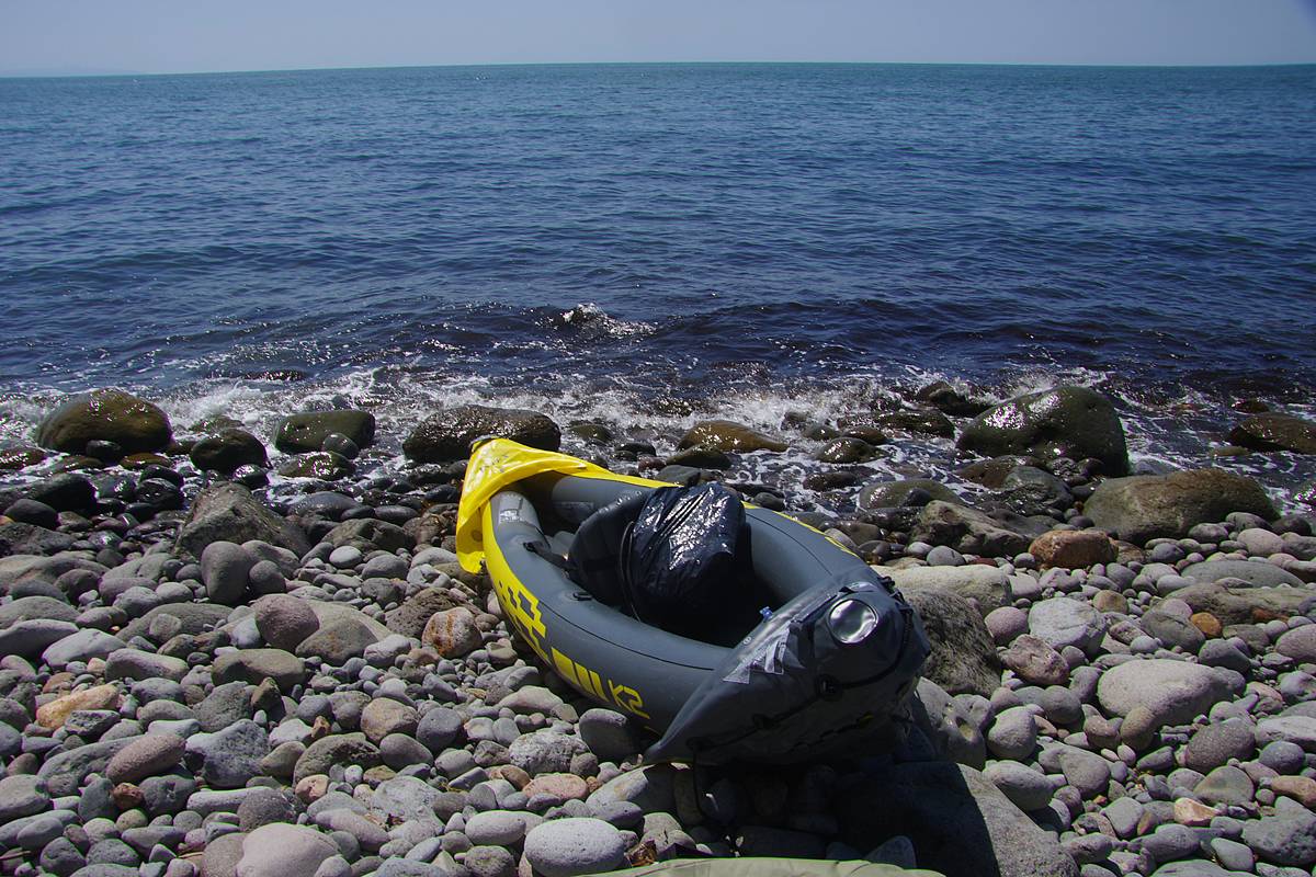 今度はうっかり横波で倒されないように、面倒くさがらず、ある程度深いところまで歩いて船を沖出ししてから、慎重に乗り込もう。