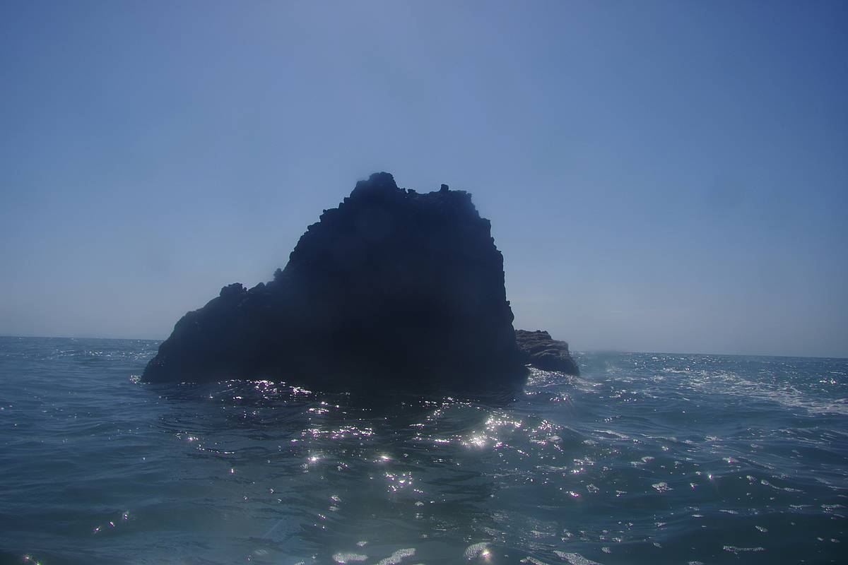 少しでも波と風の弱いところを通りたくて、沖岩の隙間を通過したところだ。