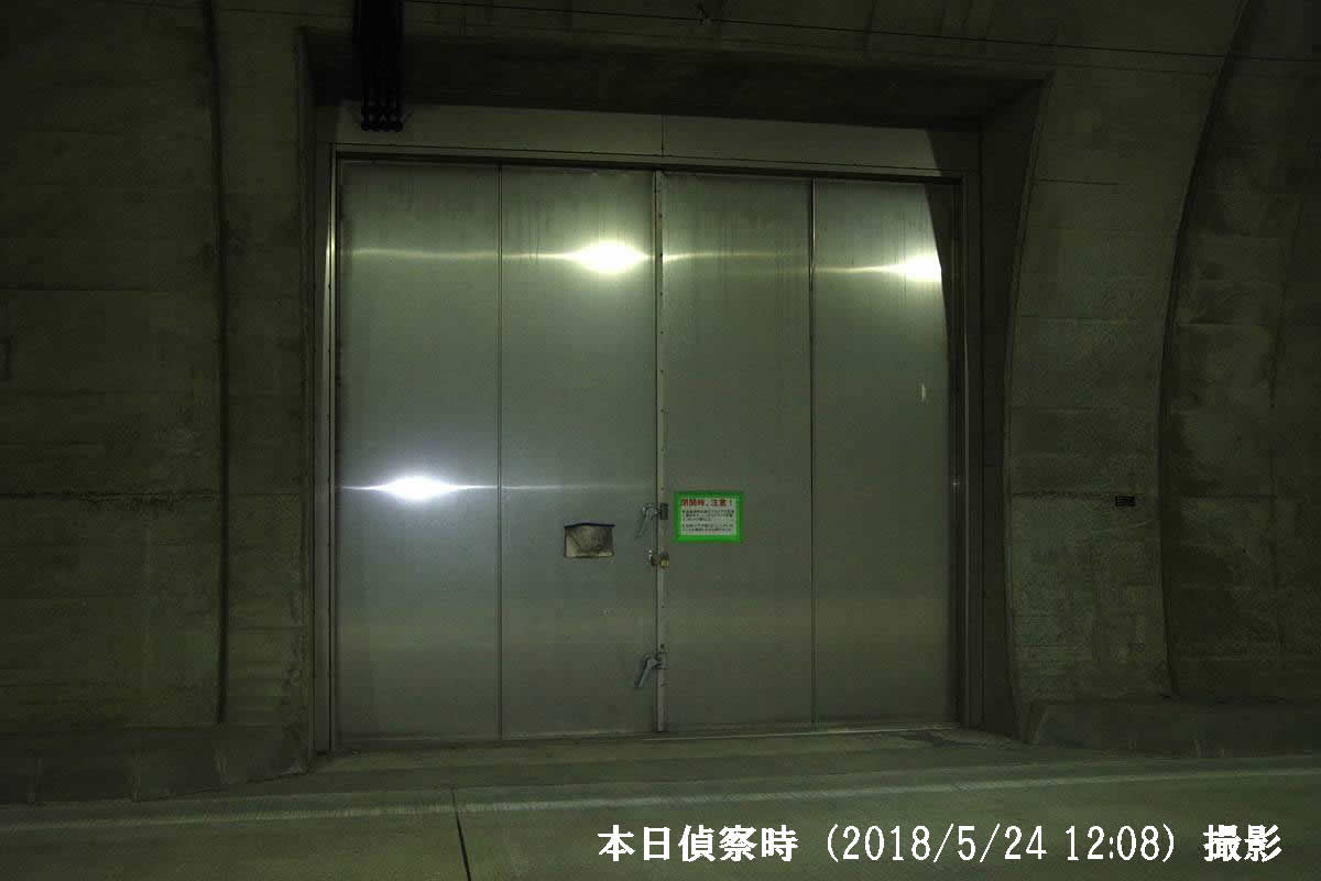 自転車でトンネル内を走行中に、この扉の存在に気付き、撮影をしつつ目視をしたが、その際、金色の南京錠が付いているという事実をもって、扉は施錠によって閉まっていると即断していた。