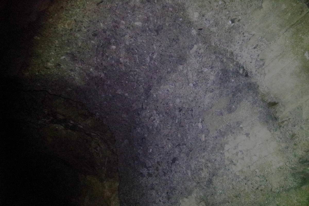 まず単純に狭いし、もの凄い地下水が流れ出ているし、すぐ隣は破れたコンクリートの天井で、大量の瓦礫を不安定に積み重ねてあるし。
