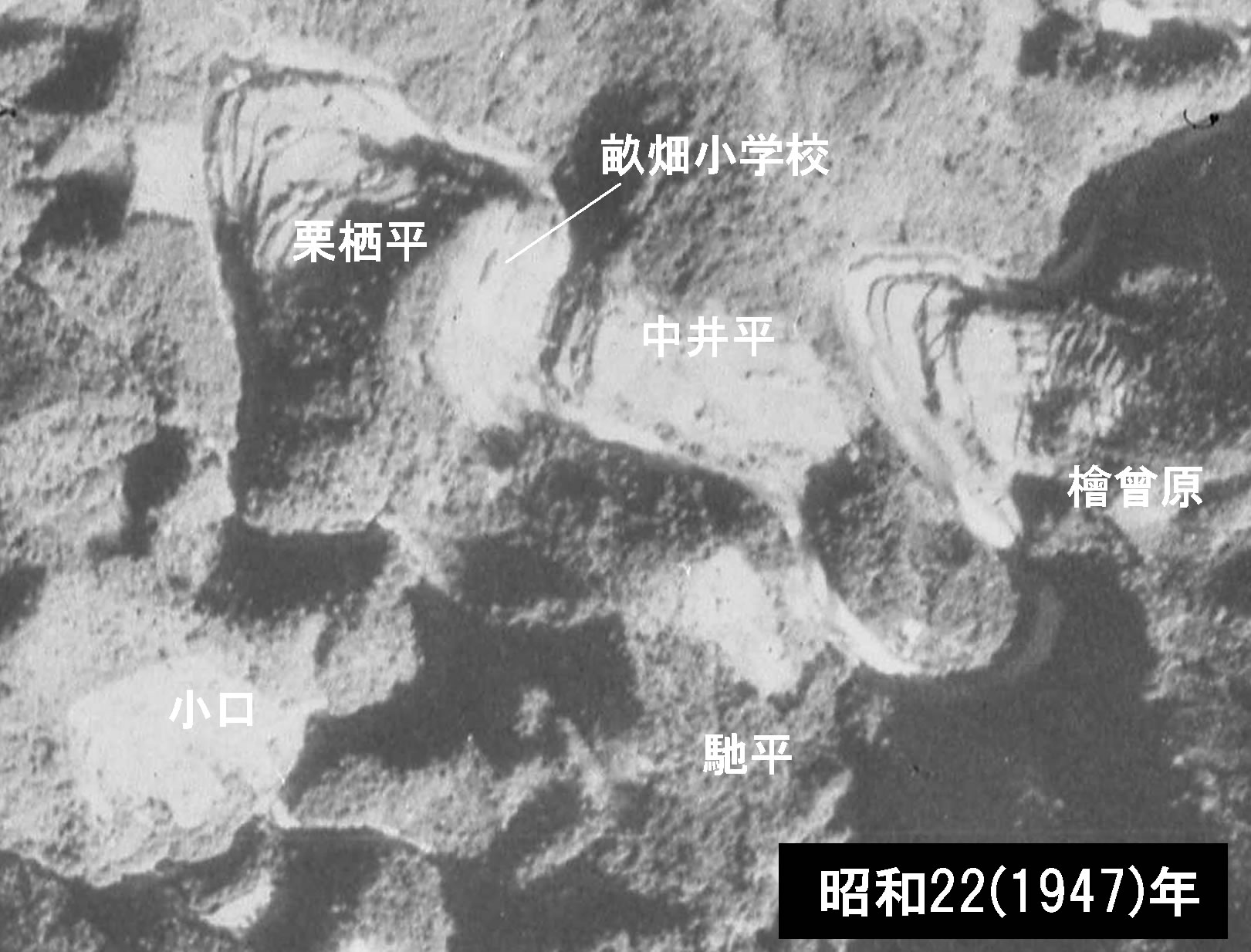 今度は畝畑集落の消長を、歴代の航空写真から調べてみる。
