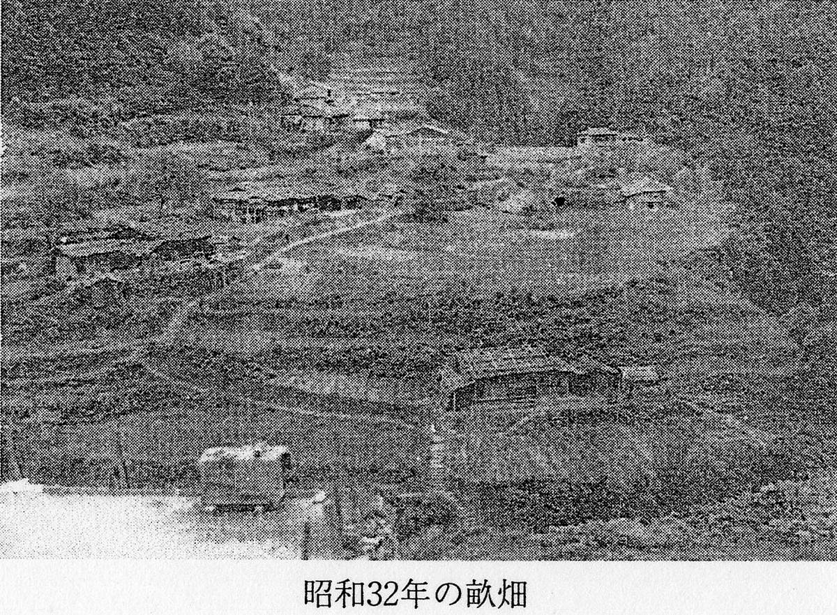 続いて紹介するのは、昭和31年から平成17年まで畝畑地区が所属していた熊野川町の『熊野川町史 通史編』(平成20年刊)の記述と、昭和32年に撮影された畝畑集落の写真だ。