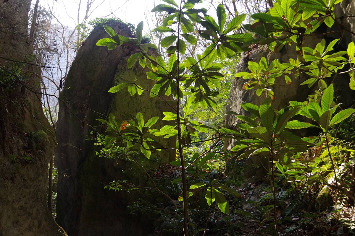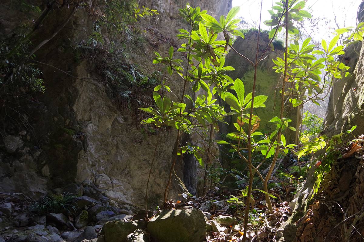 光がよく射し込む場所まで来ると、洞床には樹木が生えていたが、そこも厳密にはまだ洞内であり、半地下といえる状況であった。