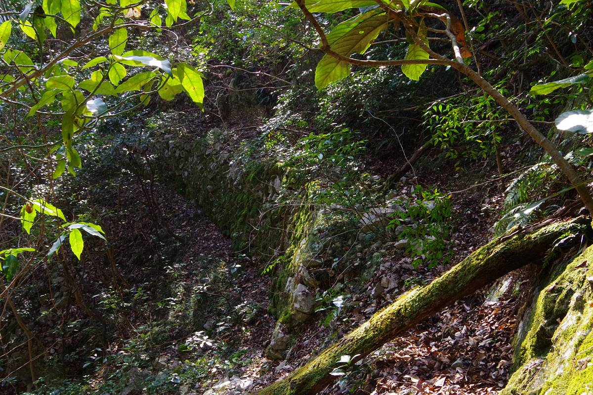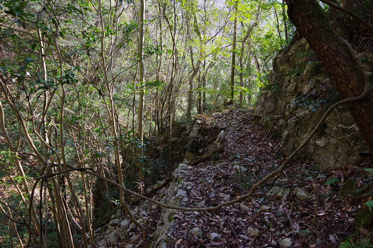 崖道だが、手摺りのようなものはなく、山側の法面も素掘りである。
