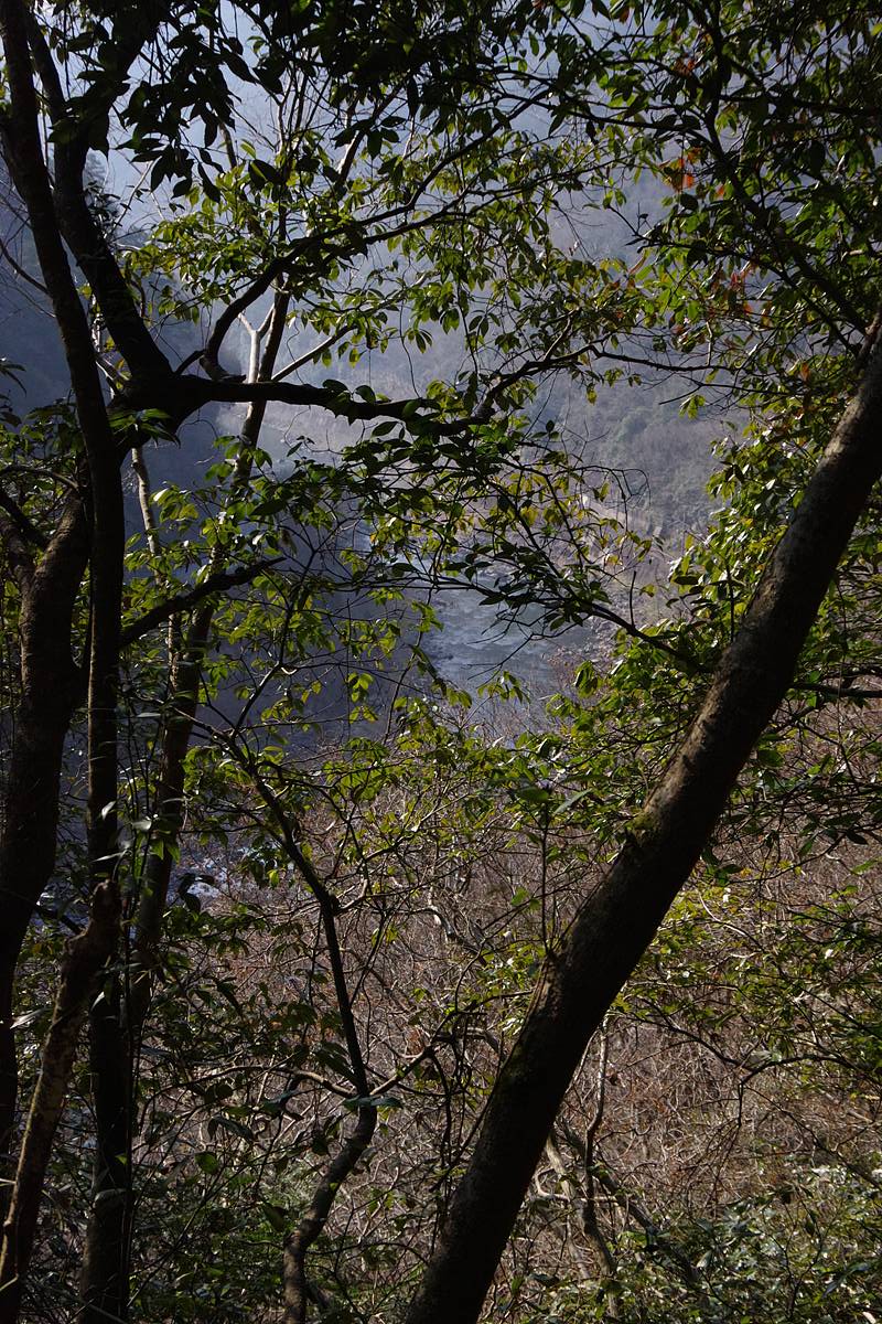 意外にしっかりとした幅の道が、一気に高度差がついた柏南平谷川の底を左に見下ろしながら、崖の縁を切り開きながら伸びている。