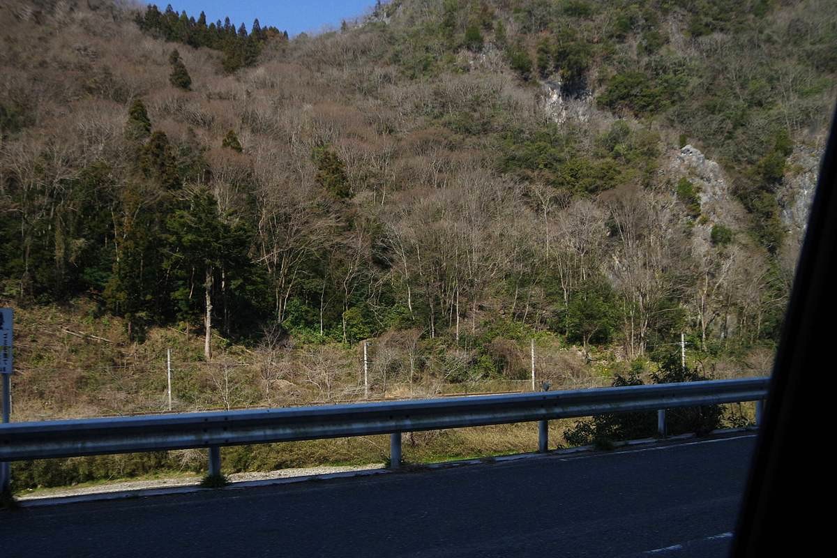 ついでに、鬼女洞東口の対岸を通る国道路上より撮影した、周辺の遠景も紹介しておこう。