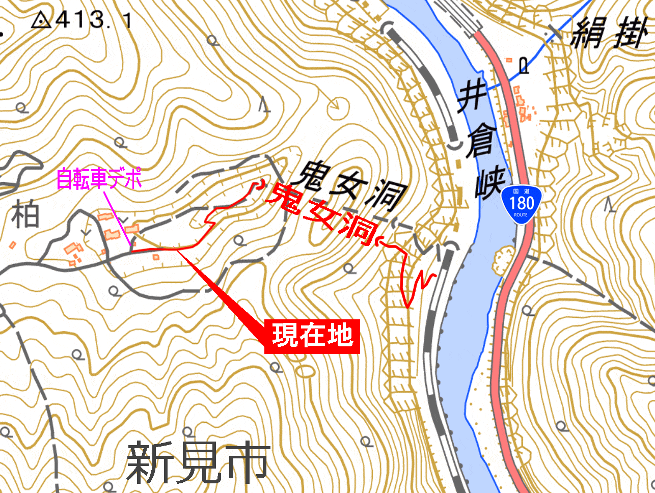 たとえば、自分の自転車を線路と国道の交点に普段からデポしていたという話や、本当に増水して鬼女洞も通れなくなったときの第3のバックアップルートを持っていた話などが、むしろ鬼女洞ルートが通学のデフォルトルートに近い状態だったのではないかと思わせるのだ。